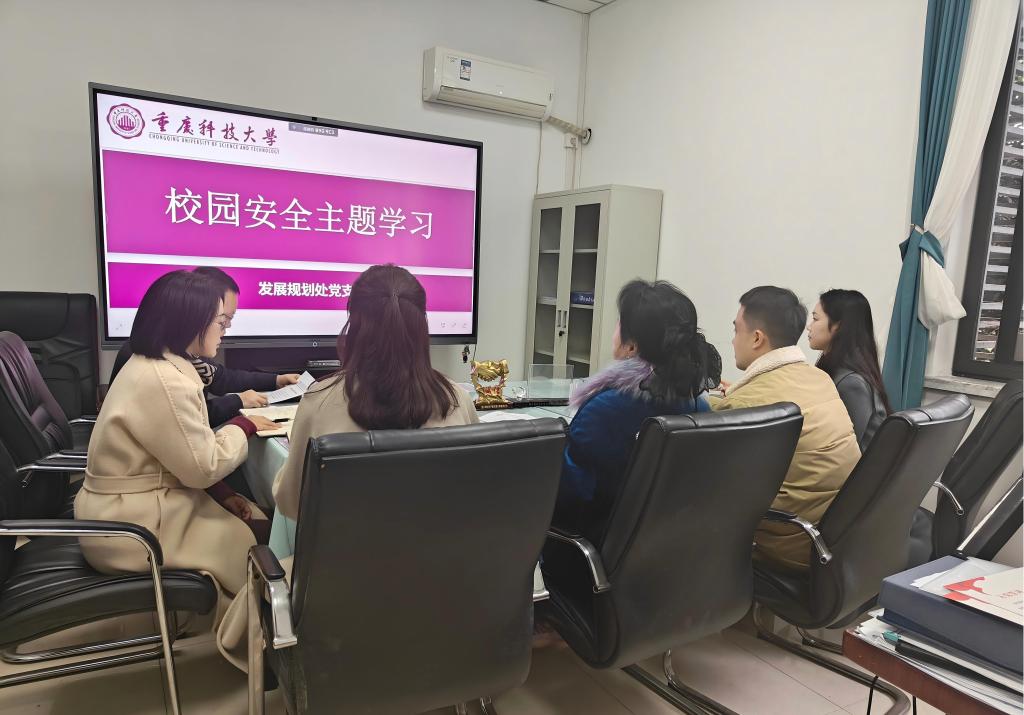 2025年11月24日,发展规划处党支部在办公楼123会议室召开校园安全专题学习会。会议由党支部副书记黄伟主持,发展规划处全体教职工参会。