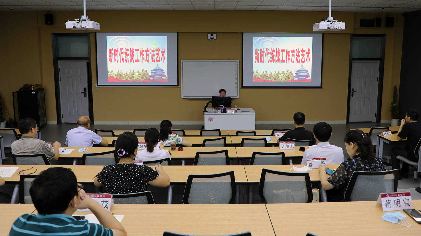 会议邀请重庆市委统战部无党派人士和党外知识分子工作处处长陈鹏作“新时代统战工作方法艺术”专题培训。陈鹏从统战工作的性质、特点、难点出发,聚焦统战工作的内容、对象、方式,运用理论知识讲解和具体事例分析相结合的方法,详细阐述了人物调研法、政策推动法、平等协商法、典型带动法、利益照顾法、联谊交友法、分众组织法、核心凝聚法、旗帜引领法等做好统战工作的九个方法艺术。