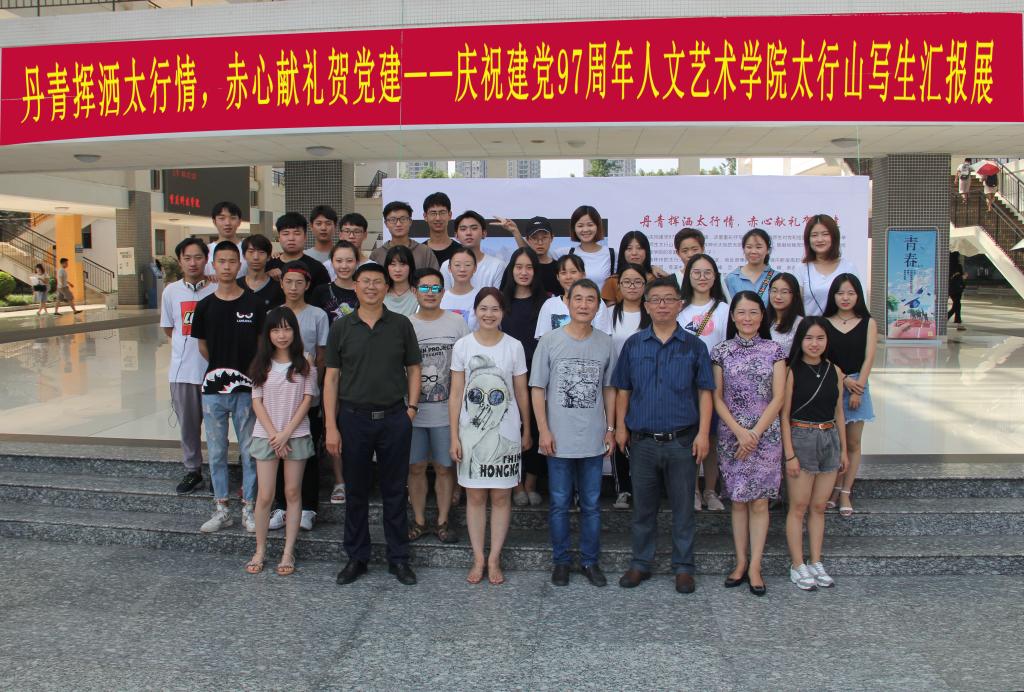 为庆祝建党97周年的光辉荣耀,抒发全院师生对党和祖国的无限热爱。6月28日,由人文艺术学院举办的太行山写生汇报展在教学主楼大厅开幕。副校长吴松出席开幕式。汇报展为期三天。