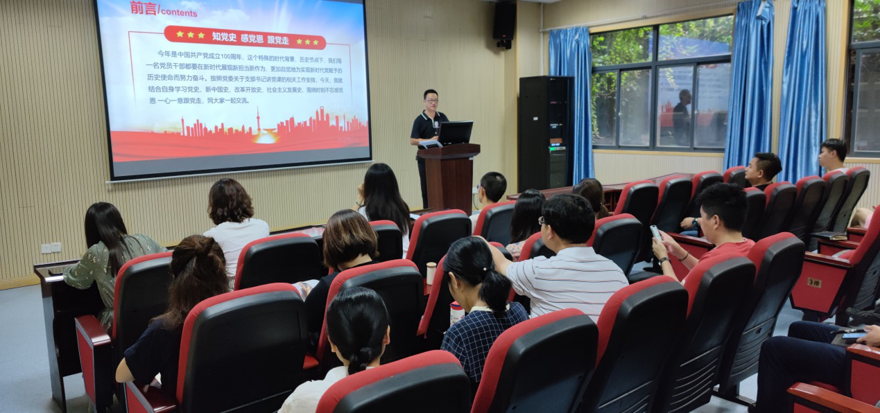 6月24日,机关六支部在大学生就业创业服务中心宣讲厅1开展了“知党史、感党恩、跟党走”为主题的党史学习教育专题党课,支部书记邓艇为支部党员上了一堂内容丰富的党课。